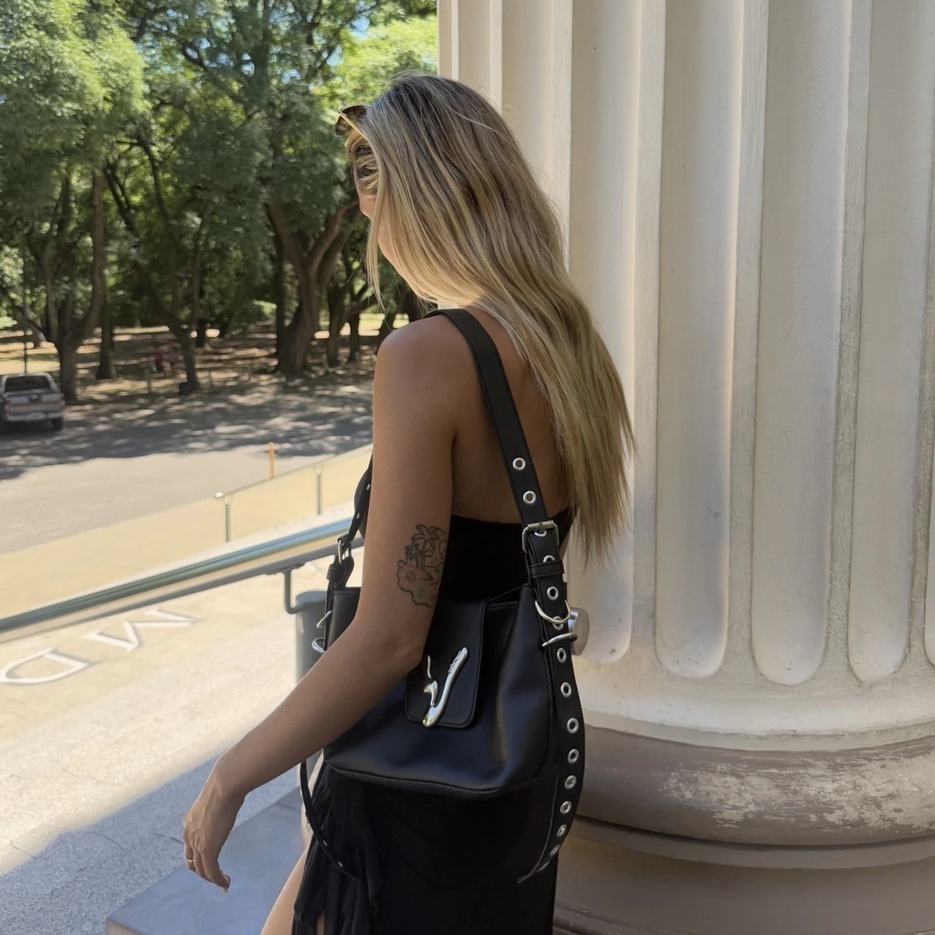 Hebillas en ambos lados para regular la correa. Avíos de zamac. - material pu.